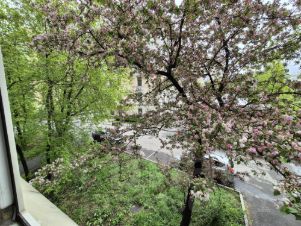 - Все окна выходят во двор, что обеспечивает низкий уровень шума. Перед окнами цветет яблоня.