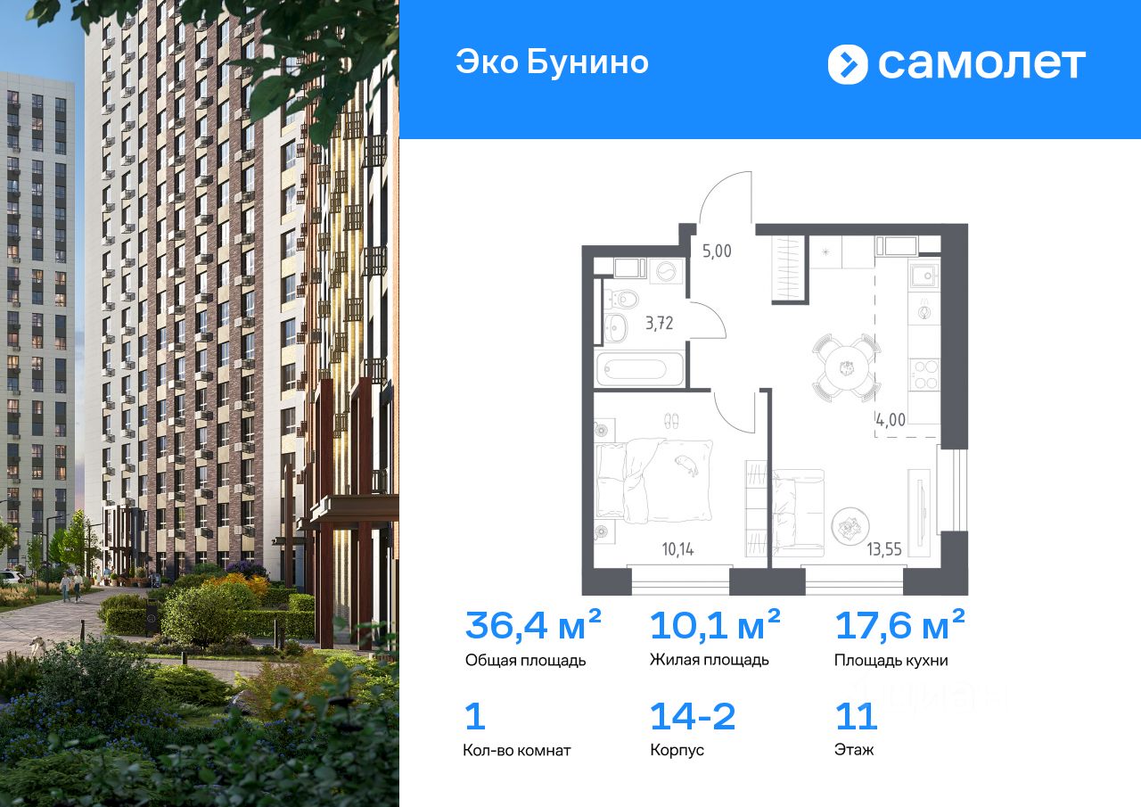 Строим кварталы для жизни с заботой о будущем. Предлагается 1-комнатная квартира комфорт-класса 36,41 кв.м в корпусе 14-2 на 11 этаже, в ЖК "Эко Бунино"