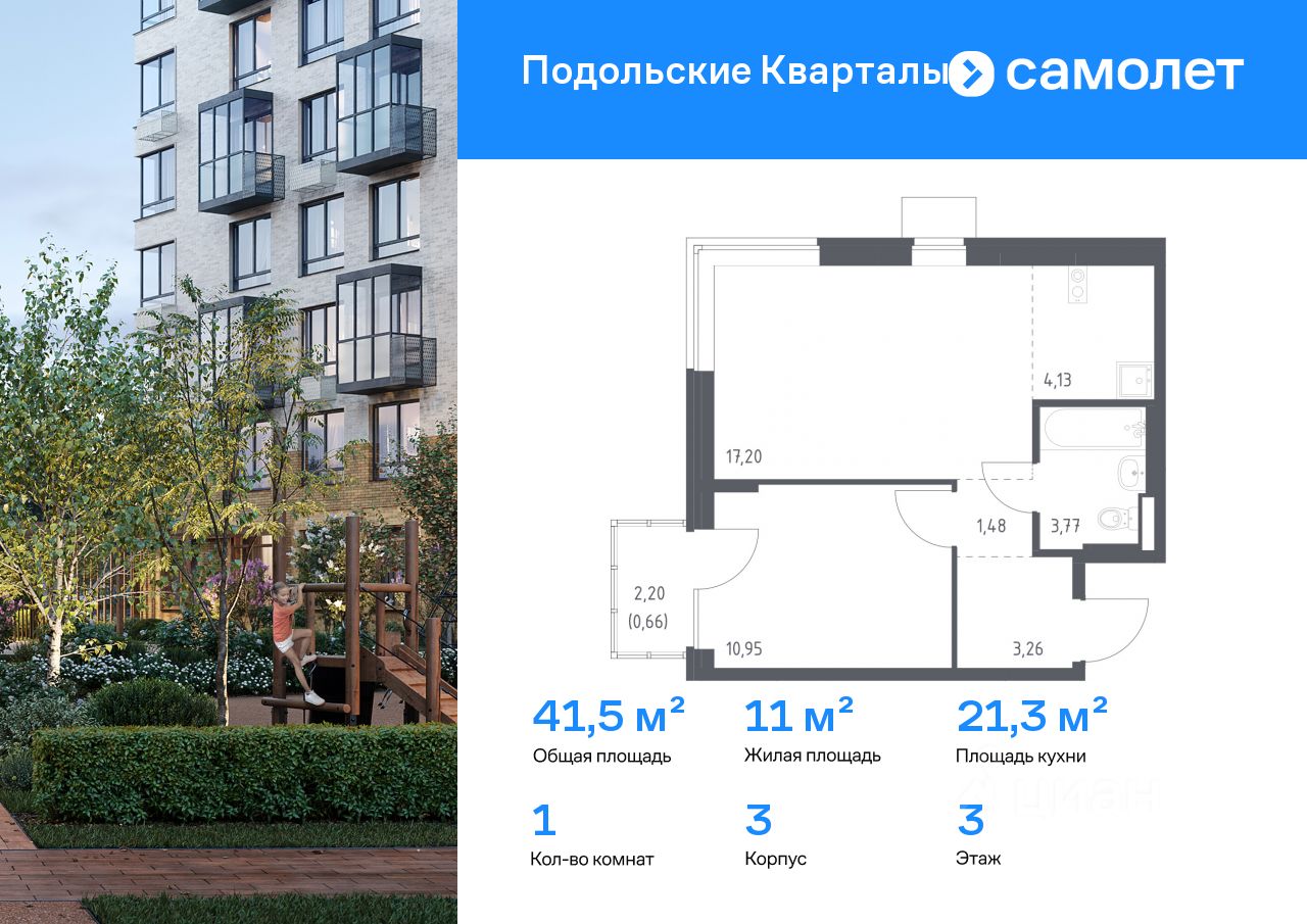 Строим кварталы для жизни с заботой о будущем. Предлагается 1-комнатная квартира комфорт-класса 41,45 кв.м в корпусе 3 на 3 этаже, в ЖК "Подольские Кварталы"