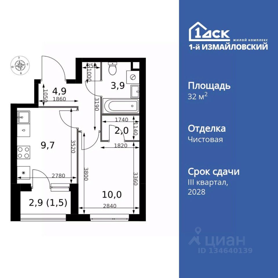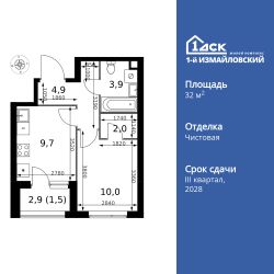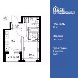 Продаётся 1-к квартира номер 3 общей площадью 32 кв.м. на 2-м этаже 24 этажного здания. Чистовая отделка. Цена с учётом скидки.