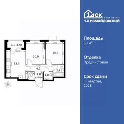 Продаётся 2-к квартира номер 946 общей площадью 50.5 кв.м. на 8-м этаже 25 этажного здания. Отделка Whitebox. Цена с учётом скидки.