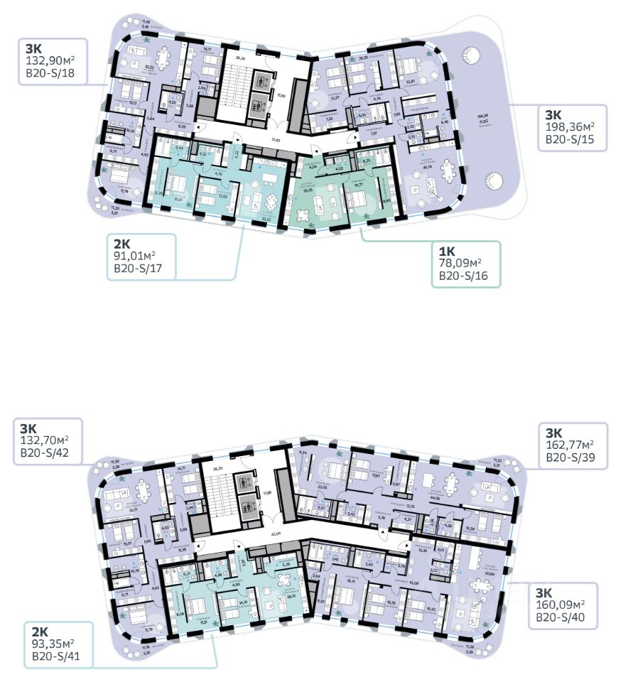 Отделка фасадов корпуса класса Суперб выполнена из природного камня. Дом возводится по технологии монолитного строительства. В квартире проведены работы по улучшению шумоизоляции, установлены двухкамерные стеклопакеты с низкоэмиссионными стёклами, минимизирующими теплопотери. Высота окон — от 3,1 до 3,25 м. Квартира сдаётся без отделки. Высота потолков — от 3,45 до 3,65 м.