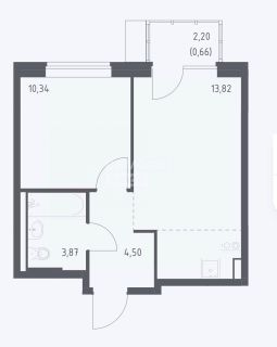 Комната 10.34м2 + кухня гостиная 3.9м2. + 13.82м2