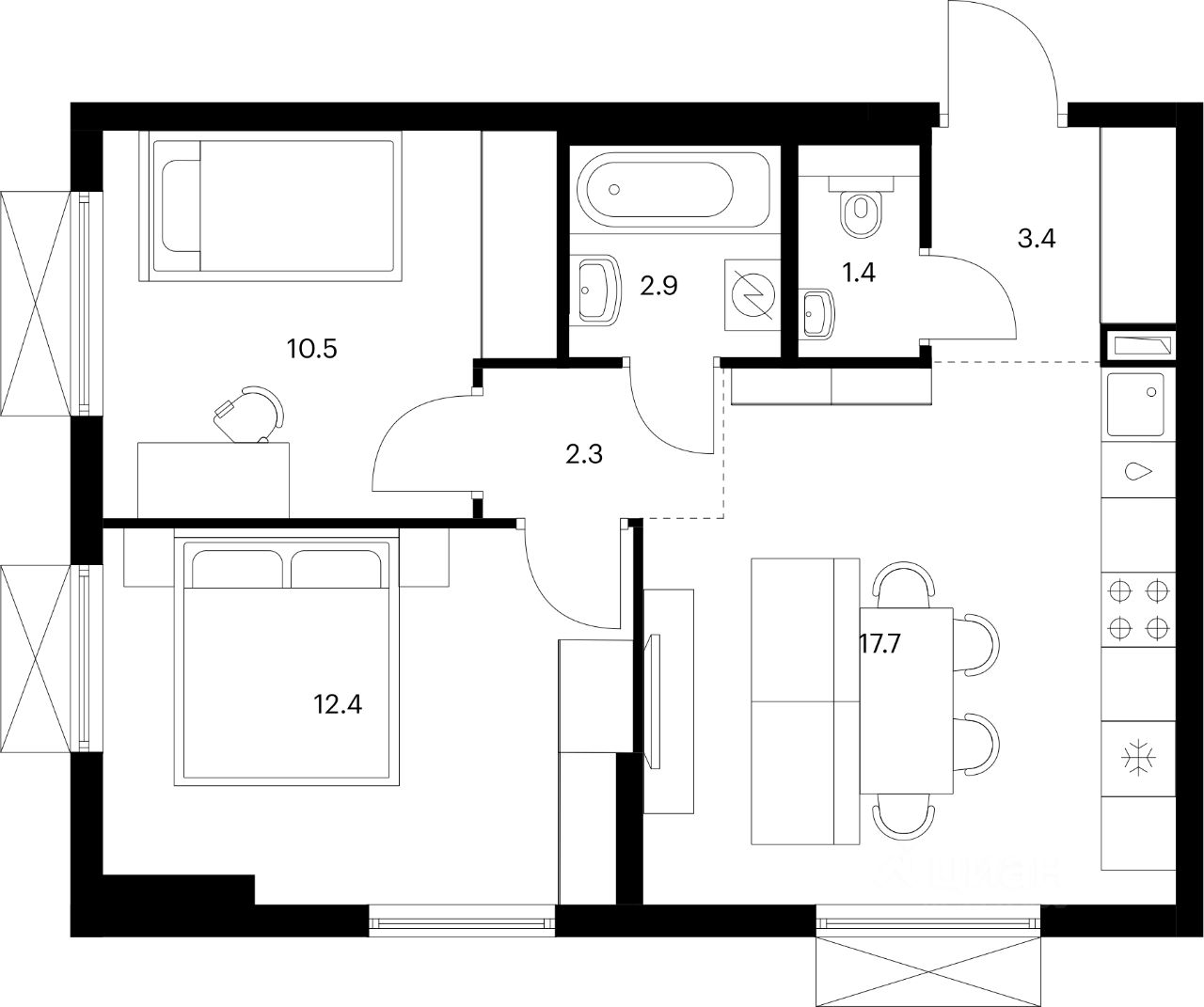 Продаётся 2-комн. квартира площадью 50,6 кв.м на 13 этаже 17 этажного дома (Корпус 4, Секция 3) проекта ПИК Никольские луга. Светлый просторный подъезд на уровне земли, функциональная планировка, большие окна, c отделкой.