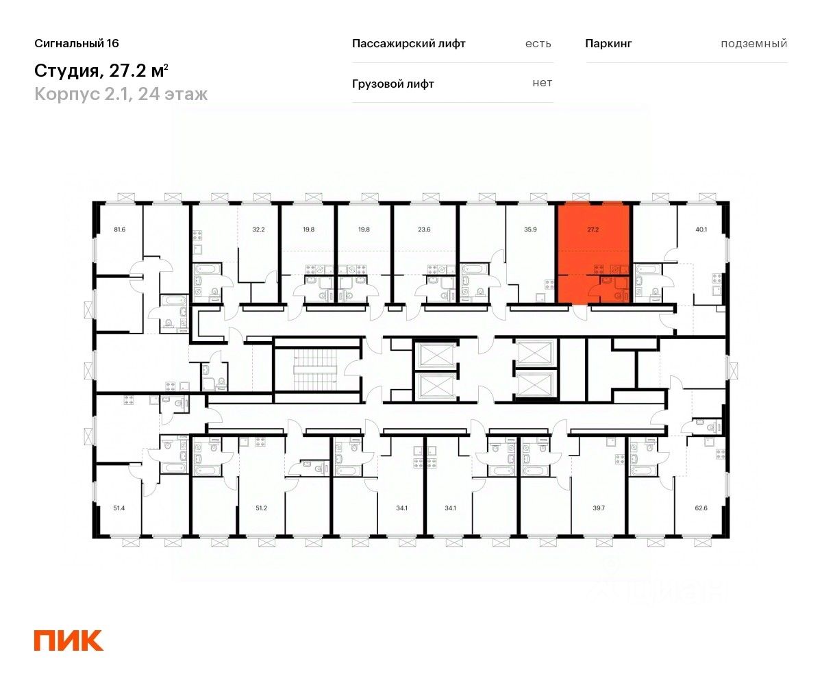 Продаётся квартира-студия площадью 27,2 кв.м на 24 этаже 33 этажного дома (Корпус 2.1.1, Секция 1) проекта ПИК Сигнальный 16. Светлый просторный подъезд на уровне земли, функциональная планировка, большие окна, c отделкой.