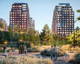 Камерный квартал в Новой Москве, на берегу Ивановского пруда. Одна из ключевых особенностей проекта — квартиры с панорамным видом на воду.