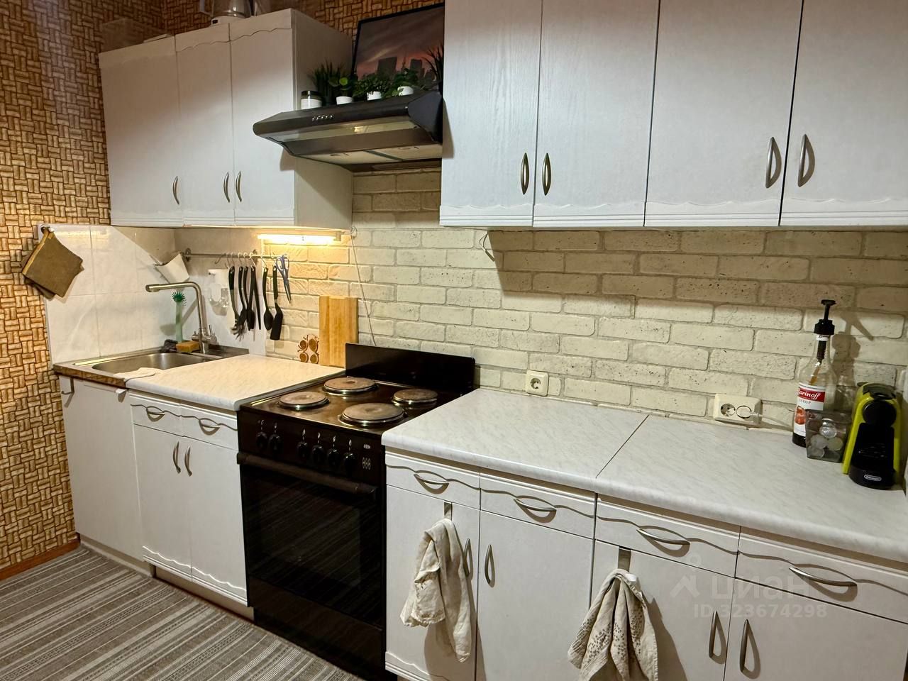 Кухня оборудована мебелью и техникой: плита с духовым шкафом, вытяжка.