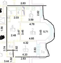 Общая площадь 58.2 кв.м. + одна застекленная лоджия. Высокие потолки 3.0 метра.