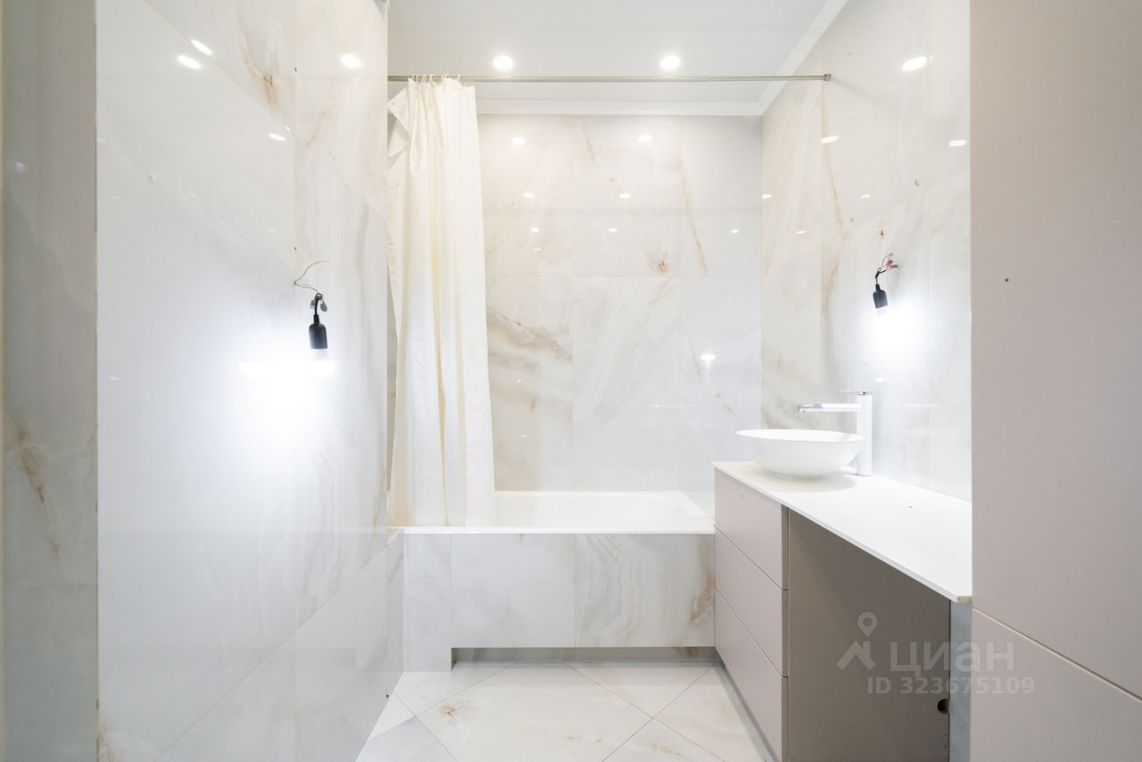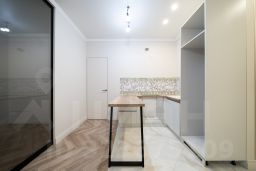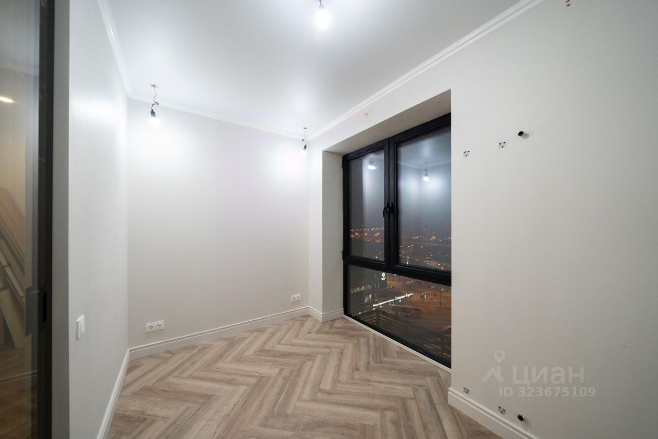 Двухкомнатная квартира общей площадью 52 квадратных метра на 13-м из 30 этажей. Комнаты 10,1 и 7,4 м², кабинет с окном 4,6 м², комната свободного назначения 5,1 м² кухня 17,6 м², с/у совмещенный 6,4 м². Три окна в пол с панорамным видом выходят на юго-восток. Высокие потолки 2,8 м. Отличное состояние квартиры. Коридор, кухня и с/у в керамогранитной плитке. В комнатах паркетная доска.