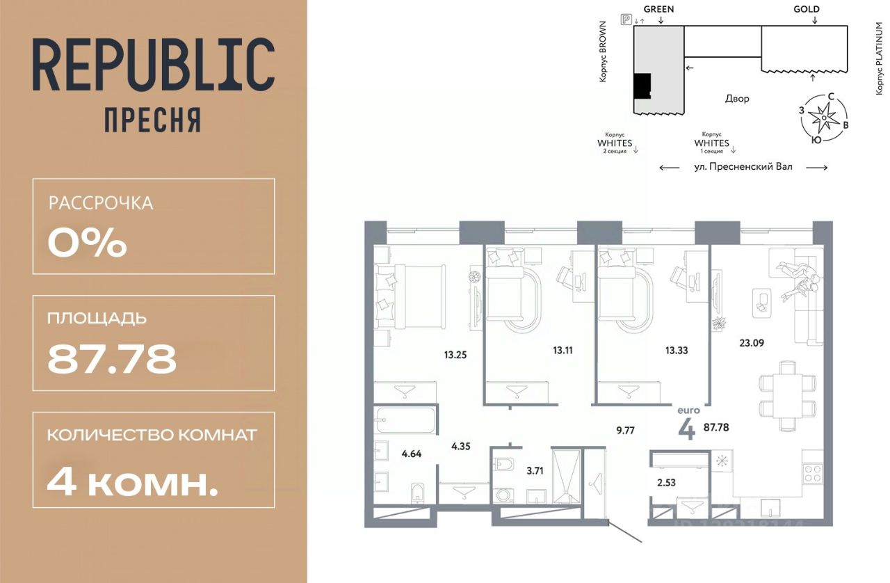 Продается 4комнатная квартира на 16 этаже от застройщика Страна Девелопмент. Площадь квартиры 87,78 кв. м.