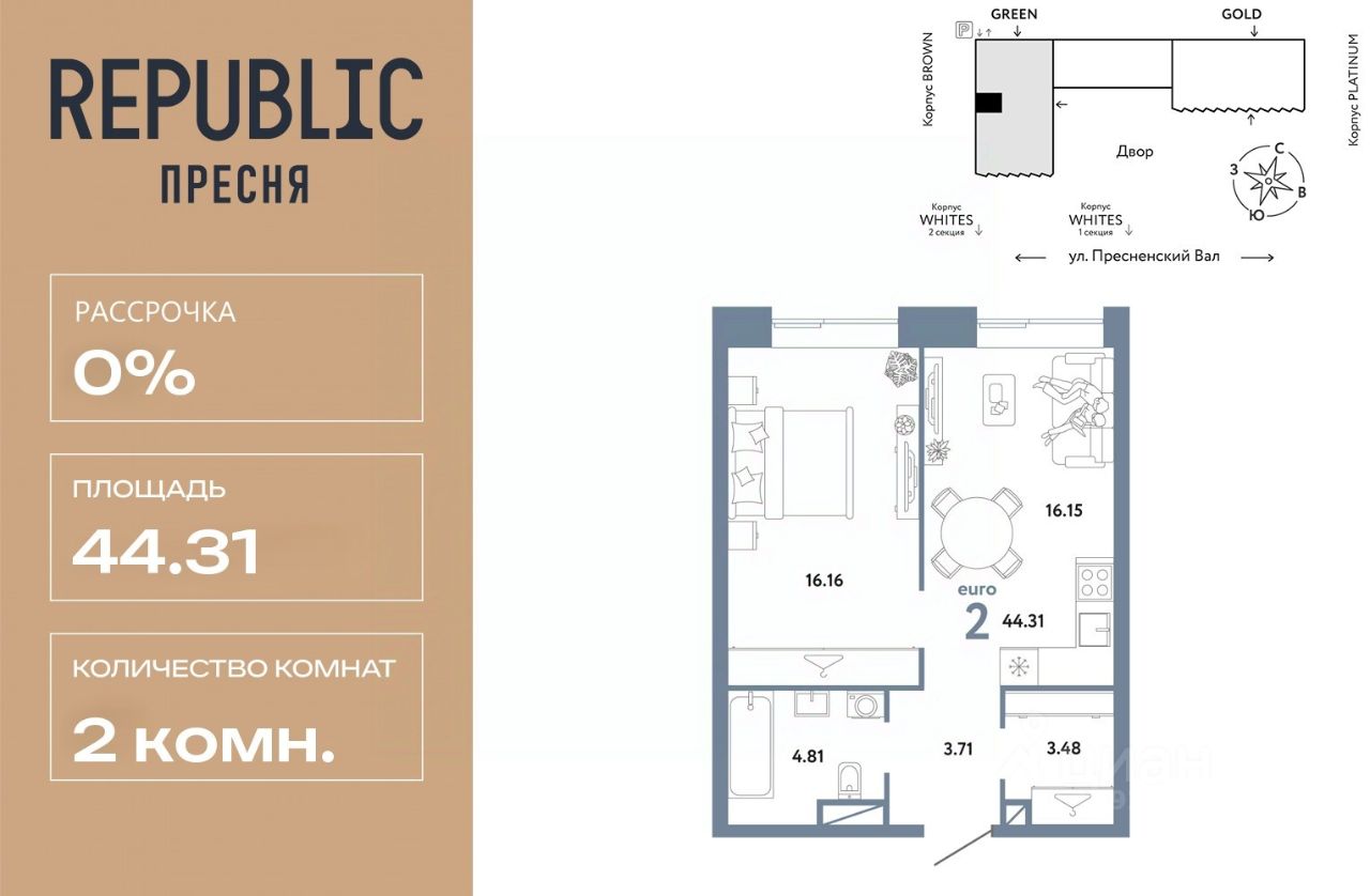 Новая квартира в ЖК "Republic" напрямую от федерального застройщика "Страна Девелопмент".