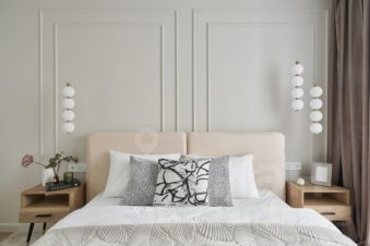 Индивидуальная мебель: Вся мебель, включая гардеробную комнату, изготовлена на заказ по эксклюзивным эскизам.