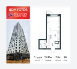 Просторная студия 26,85 м² с высокими потолками 2,8 м. Живите, инвестируйте или легко сдавайте в аренду — спрос огромный!