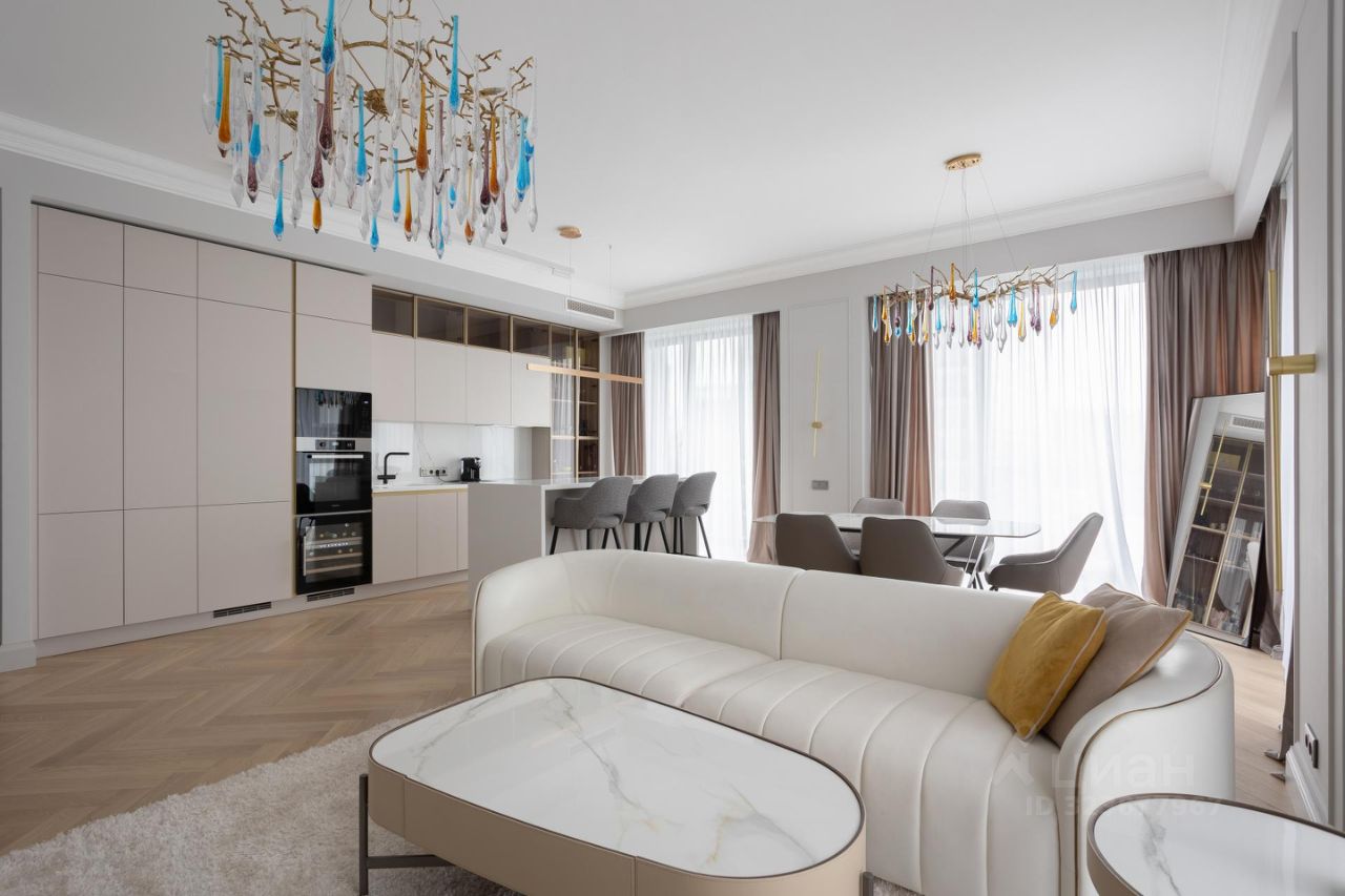 Отделка выполнена исключительно из ПРЕМИАЛЬНЫХ МАТЕРИАЛОВ, квартира полностью меблирована, на кухне встроенная бытовая техника Miele.