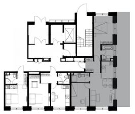 Квартира расположена на 2-м этаже 6-ти этажной секции 32-этажного монолитного дома (корпус Запад);