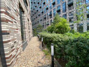 29,9м2 - уютная терраса, окруженная живой изгородью из кустарника, выходящая на тихий внутренний двор, расположенный на стилобате ЖК.