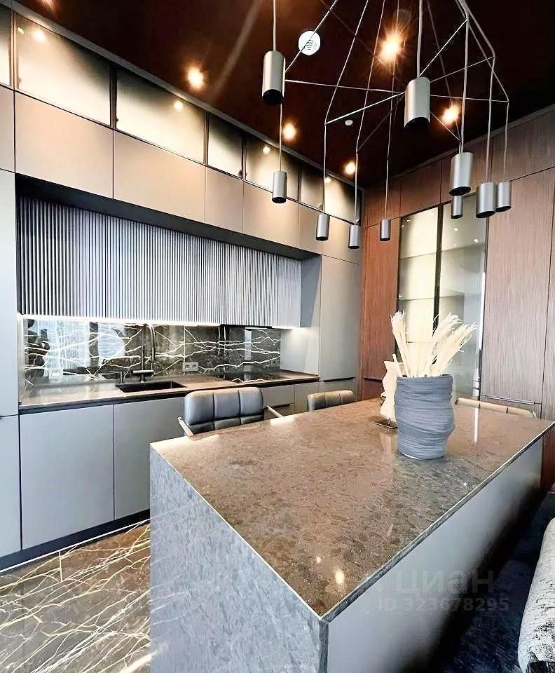 Выполнен качественный, стильный ремонт. Апартаменты включают просторную гостиную, совмещенную с кухней, спальня, санузел и холл. Апартамент полностью меблирован (восхитительная дизайнерская мебель) и укомплектован всей необходимой техникой. Из панорамных окон открывается великолепный вид.