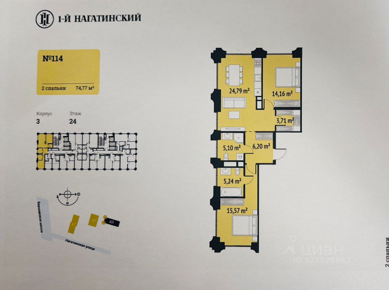 В квартире открывается прекрасный вид на Москву реку через панорамные окна. Видовая квартира , в продаже подобных квартир в этом корпусе на сегодня нет. Потолки 3,15 м. В квартире две изолированные комнаты и кухня-столовая, два совмещенных санузела, предчистовая отделка от застройщика.