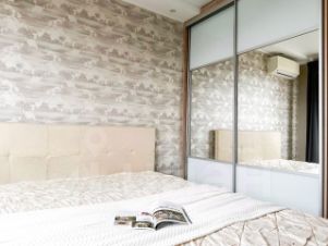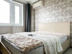 Спальня: двуспальная кровать, шкаф-купе, шторы блэкаут.