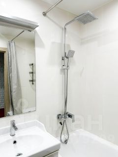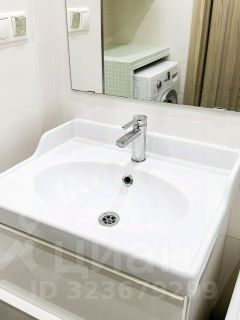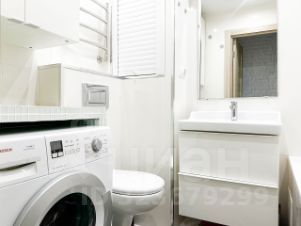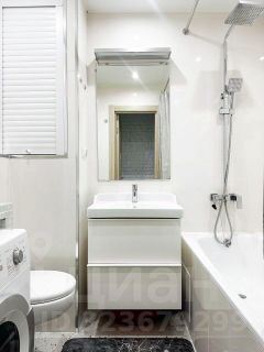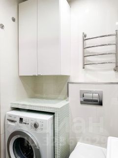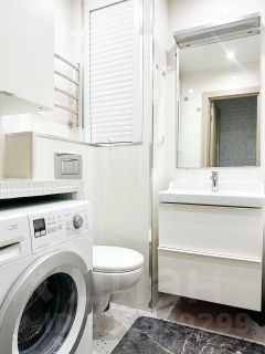 Санузел: стиральная машина Bosch, большое зеркало с подсветкой.