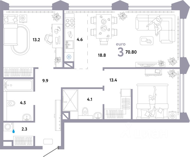 Продаётся 3-комнатная квартира в строящемся доме (Дом 1), срок сдачи: II-кв. 2026, общей площадью 70.8 кв.м., на 28 этаже. Многоэтажные жилые дома с объектами инфраструктуры, расположенные по адресу: г. Москва, внутригородское муниципальное образование Очаково - Матвеевское, ул. Озерная, вл. 42.