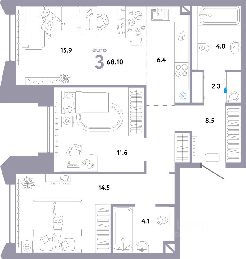 Продаётся 3-комнатная квартира в строящемся доме (Дом 1), срок сдачи: II-кв. 2026, общей площадью 68.1 кв.м., на 28 этаже. Многоэтажные жилые дома с объектами инфраструктуры, расположенные по адресу: г. Москва, внутригородское муниципальное образование Очаково - Матвеевское, ул. Озерная, вл. 42.