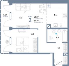 Продаётся 2-комнатная квартира в строящемся доме (Дом 1), срок сдачи: II-кв. 2026, общей площадью 53.37 кв.м., на 8 этаже. Многоэтажные жилые дома с объектами инфраструктуры, расположенные по адресу: г. Москва, внутригородское муниципальное образование Очаково - Матвеевское, ул. Озерная, вл. 42.