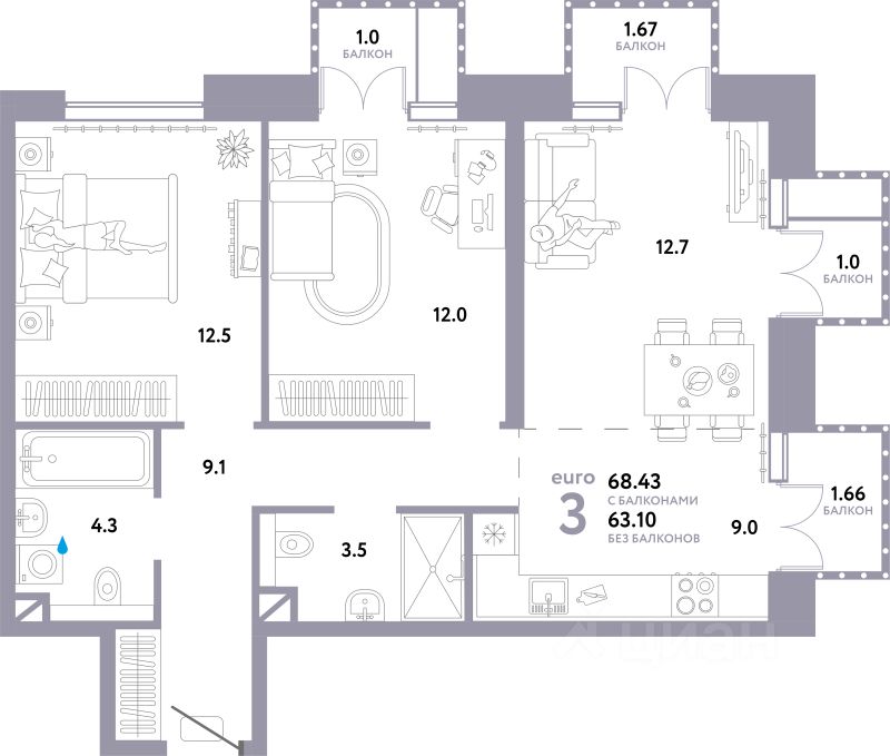 Продаётся 3-комнатная квартира в строящемся доме (Дом 1), срок сдачи: II-кв. 2026, общей площадью 68.43 кв.м., на 7 этаже. Многоэтажные жилые дома с объектами инфраструктуры, расположенные по адресу: г. Москва, внутригородское муниципальное образование Очаково - Матвеевское, ул. Озерная, вл. 42.