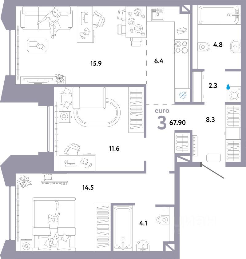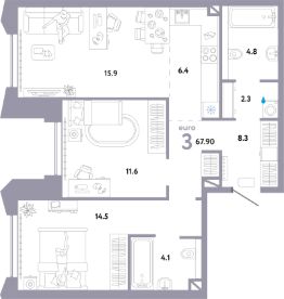Продаётся 3-комнатная квартира в строящемся доме (Дом 1), срок сдачи: II-кв. 2026, общей площадью 67.9 кв.м., на 26 этаже. Многоэтажные жилые дома с объектами инфраструктуры, расположенные по адресу: г. Москва, внутригородское муниципальное образование Очаково - Матвеевское, ул. Озерная, вл. 42.