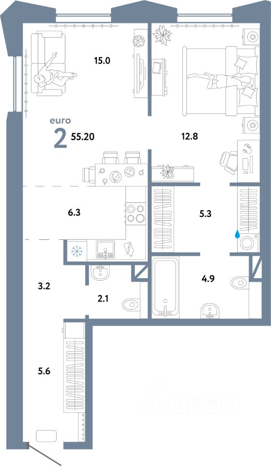 Продаётся 2-комнатная квартира в строящемся доме (Дом 1), срок сдачи: II-кв. 2026, общей площадью 55.2 кв.м., на 7 этаже. Многоэтажные жилые дома с объектами инфраструктуры, расположенные по адресу: г. Москва, внутригородское муниципальное образование Очаково - Матвеевское, ул. Озерная, вл. 42.