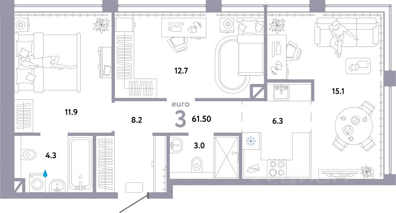 Продаётся 3-комнатная квартира в строящемся доме (Дом 1), срок сдачи: II-кв. 2026, общей площадью 61.5 кв.м., на 9 этаже. Многоэтажные жилые дома с объектами инфраструктуры, расположенные по адресу: г. Москва, внутригородское муниципальное образование Очаково - Матвеевское, ул. Озерная, вл. 42.