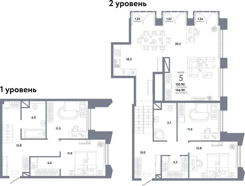 Продаётся 5-комнатная квартира в строящемся доме (Дом 1), срок сдачи: II-кв. 2026, общей площадью 150.9 кв.м., на 29 этаже. Многоэтажные жилые дома с объектами инфраструктуры, расположенные по адресу: г. Москва, внутригородское муниципальное образование Очаково - Матвеевское, ул. Озерная, вл. 42.