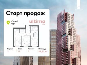 Старт продаж! Продаётся 2-комнатная квартира от застройщика ГК "КОРТРОС" в жилом комплексе бизнес-класса ULTIMAcity. Квартира расположена на 12 этаже 52 этажного корпуса 2. Общая площадь 59,62 м². Без отделки.