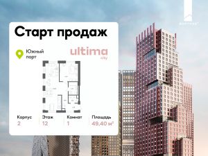 Старт продаж! Продаётся 1-комнатная квартира от застройщика ГК "КОРТРОС" в жилом комплексе бизнес-класса ULTIMAcity. Квартира расположена на 12 этаже 52 этажного корпуса 2. Общая площадь 49,40 м². Без отделки.