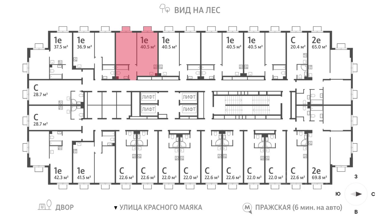 Корпуса расположены таким образом, что с них открываются панорамные виды на лесной массив. Все корпуса будут находиться на общей площадке, где будут созданы сквозные пешеходные арки, соединяющие дворовое пространство с территорией Битцевского леса. Кроме того, на площадке будут расположены объекты социального назначения и коммерческие помещения.
