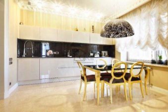 Мебель: кухня - Nolte (Германия) в лаке, обеденный стол и стулья EGO (Италия), гостиная стенка и двери Мекран (индивидуальное изготовление, клеенный массив в черном лаке), спальня EGO (Италия). На кухне техника Miele, стиральная и сушильная машины Кuppersbusch (Швейцария). Кондиционеры Hitachi.