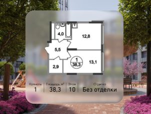 Общая площадь квартиры - 38,3 кв. м, этаж 10 из 17.