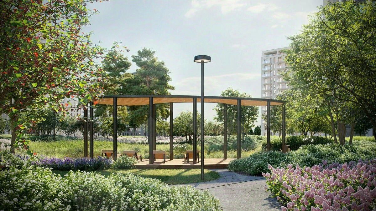 На территории бывшего завода "Станкоагрегат" появится ландшафтный парк площадью 2,4 га с прудом, беседками, павильоном, зонами для спорта, игр и отдыха, велодорожками и площадкой для выгула собак. Номер в базе: J62448
