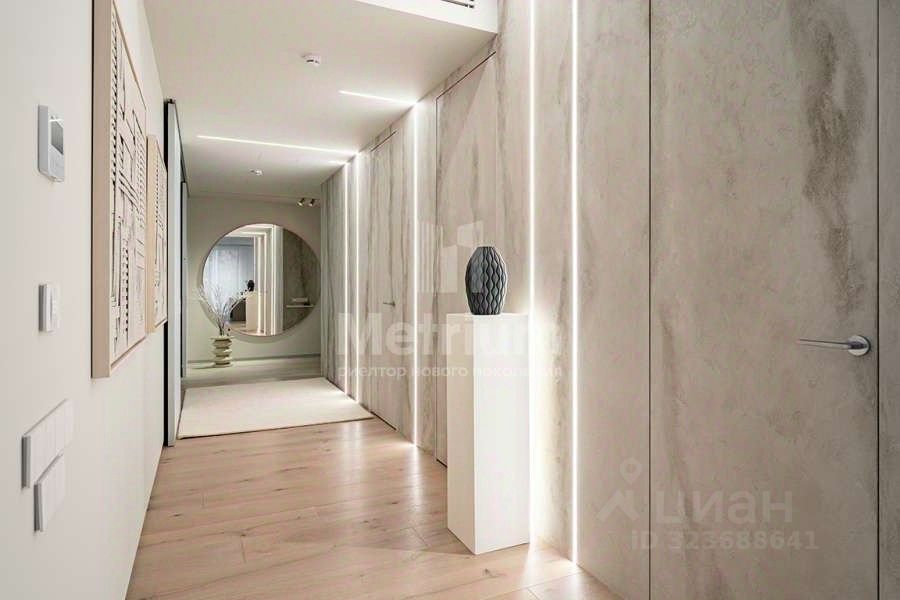 Планировочные решения и интерьер апартаментов выполнен по авторскому проекту и включают в себя кухню-гостиную, мастер спальню с ванной, расположенной напротив кровати, с зоной гардероба и санузла, а так же гостевой санузел, гардероб в общей зоне и постирочную.