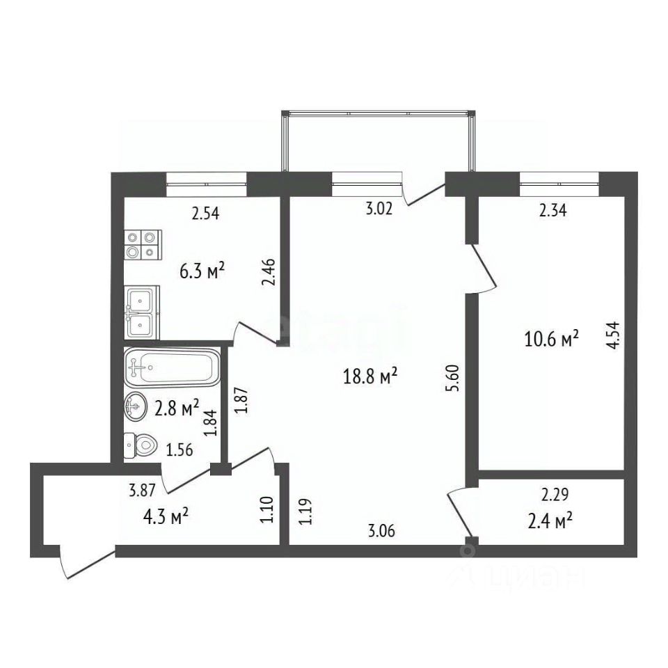 Идеальная планировка: общая площадь 46 м² позволит каждому члену семьи иметь свое личное пространство.