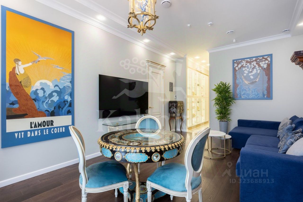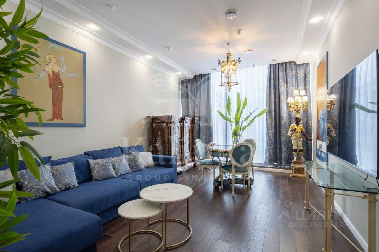 Жилой комплекс расположен всего в 5 минутах пешком от станции метро "Маяковская". Общая площадь составляет 80 кв. м. Апартаменты находятся на 10 этаже 12-этажного дома, а высота потолков достигает 3,3 метра.