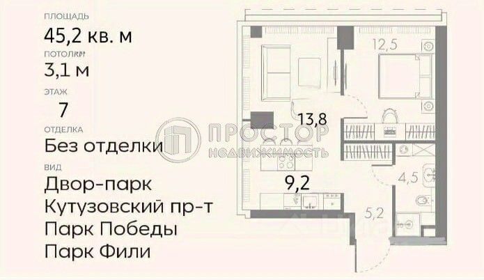 Жилой комплекс "River Park Towers Кутузовский" находится в районе Дорогомилово. В пешей доступности находятся детские сады, школы, магазины, кафе, рестораны, салоны красоты, медицинские учреждения, фитнес клуб, парк Фили и Поклонная гора. В 100 метрах от комплекса расположена благоустроенная набережная. До метро "Фили" всего 5 минут пешком. Один взрослый собственник.