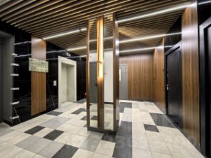 Апарт-комплекс - бизнес класса. Есть всё необходимое - бесплатный фитнес на цокольном этаже, зоны хранения, коворкинг, кафе, пункт OZON, турагентство, апарт-отель.