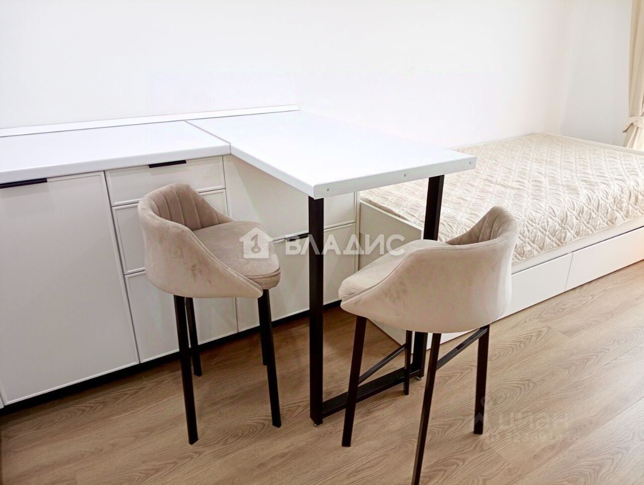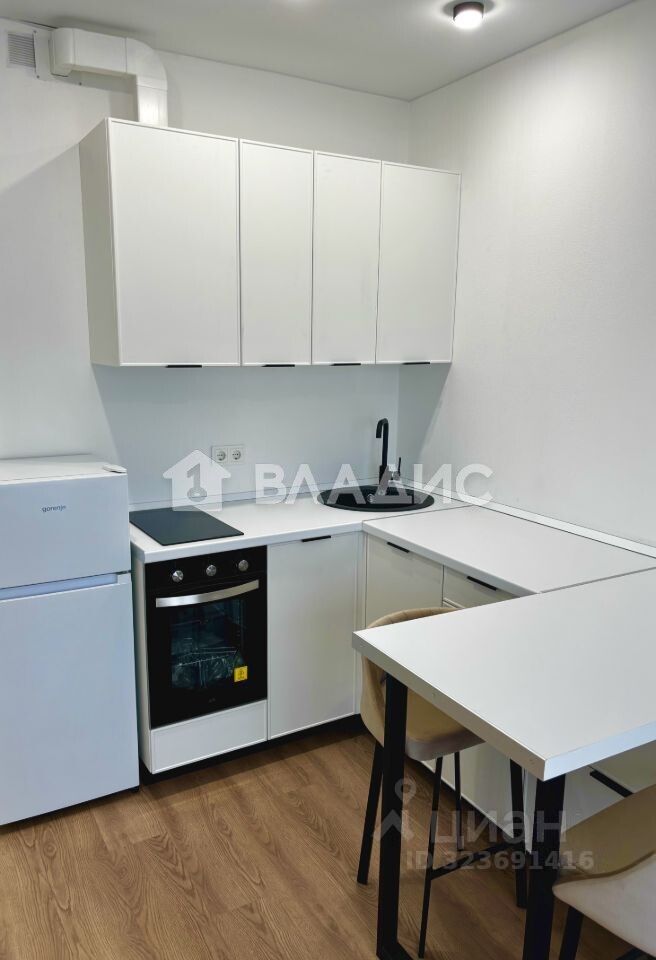 Квартира расположена на 15 этаже 18-этажного панельного дома 2023 года постройки. Общая площадь — 20 кв. м, высота потолков — 2,7 м, что создаёт ощущение простора. В квартире выполнен евроремонт, квартира готова к заселению.