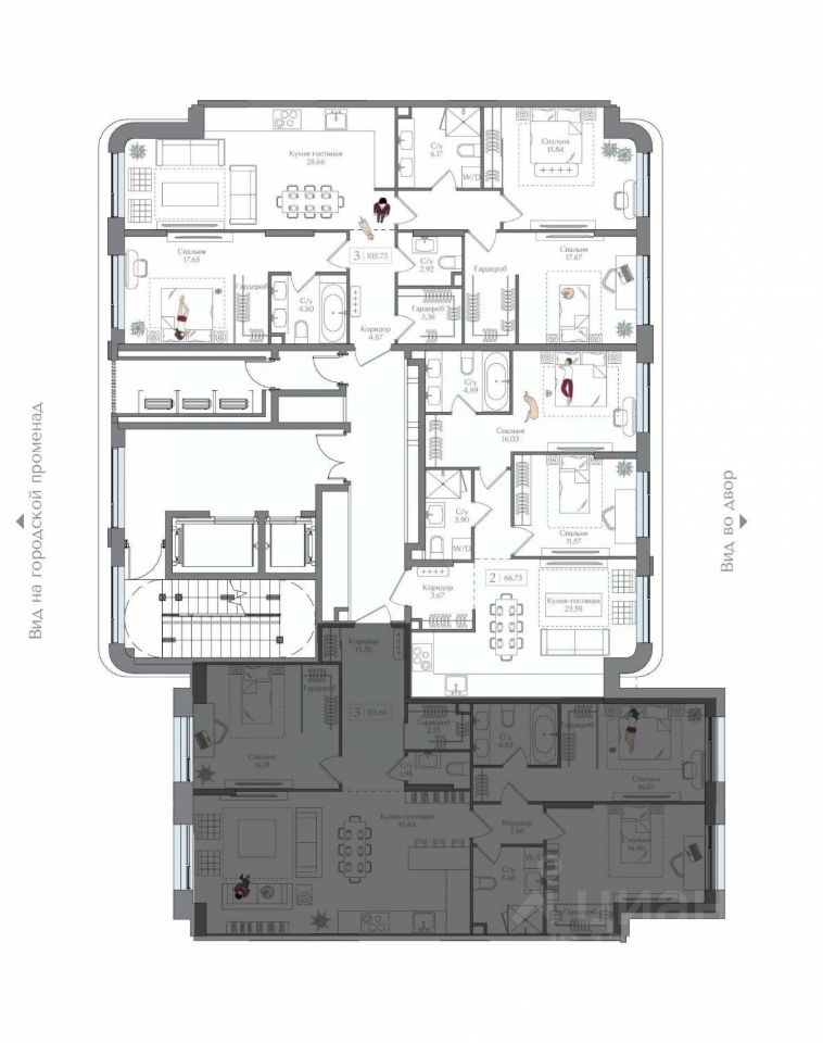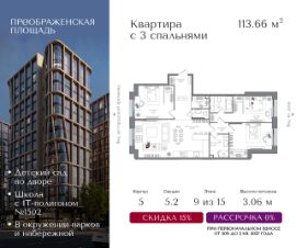 Квартира на 9 этаже в жилом комплексе премиум-класса "Преображенская площадь". Общая площадь: 113.66 кв.м.