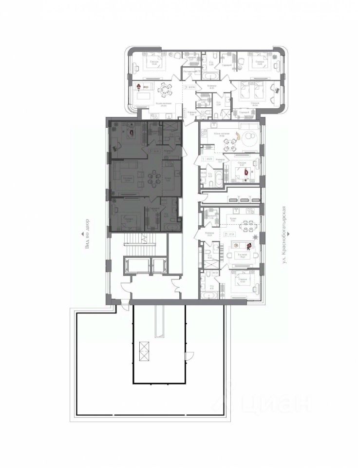 Внутренний двор 1,5 га функциональное и безопасное пространство для игр, работы и занятий спортом. Пешеходный променад для прогулок. Дома переменной этажности. Есть подземный паркинг.