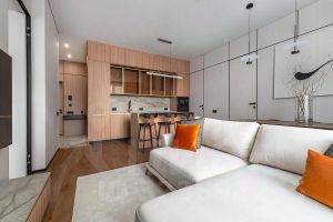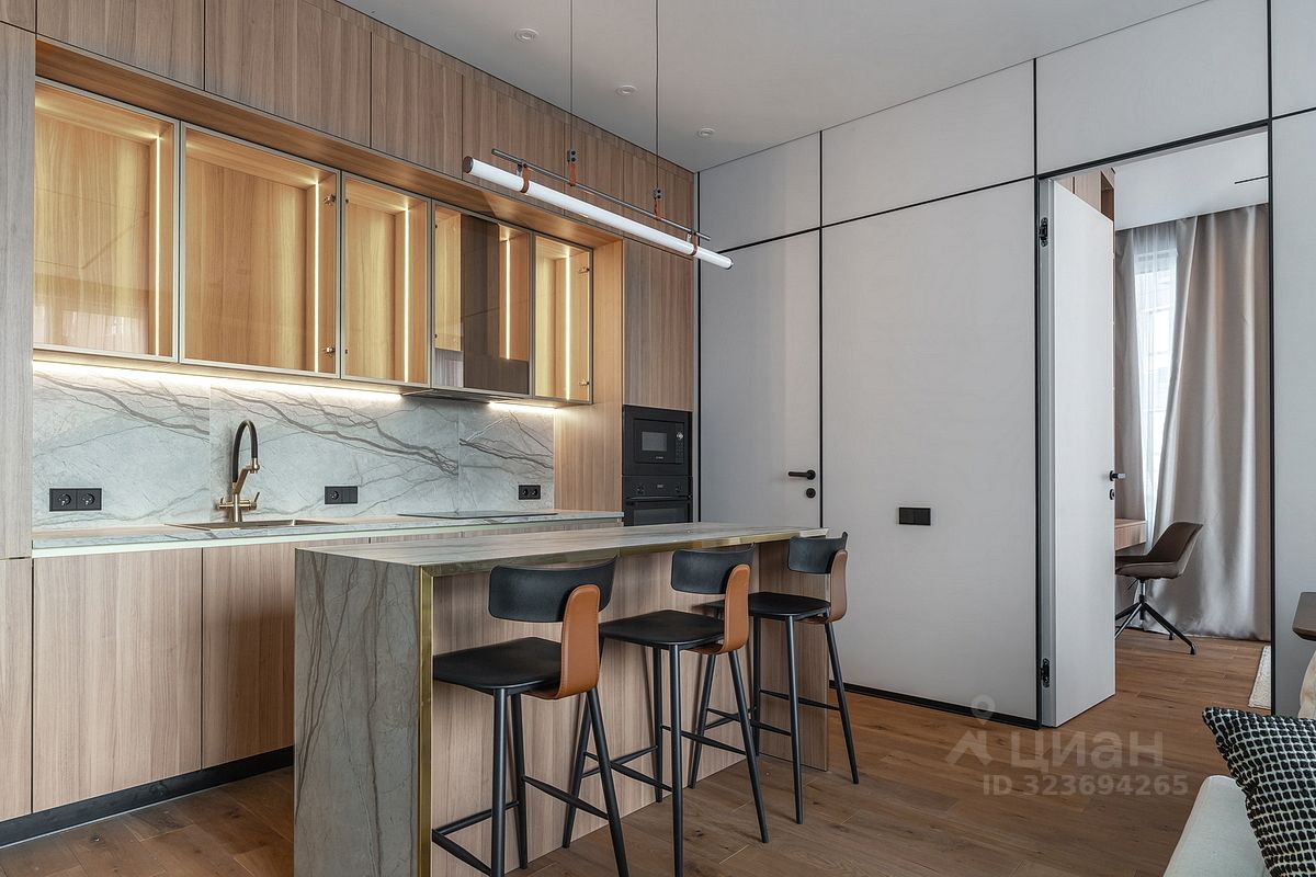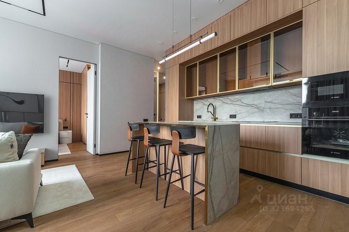 В квартире выполнена премиальная дизайнерская отделка с использованием высококачественных и натуральных материалов.