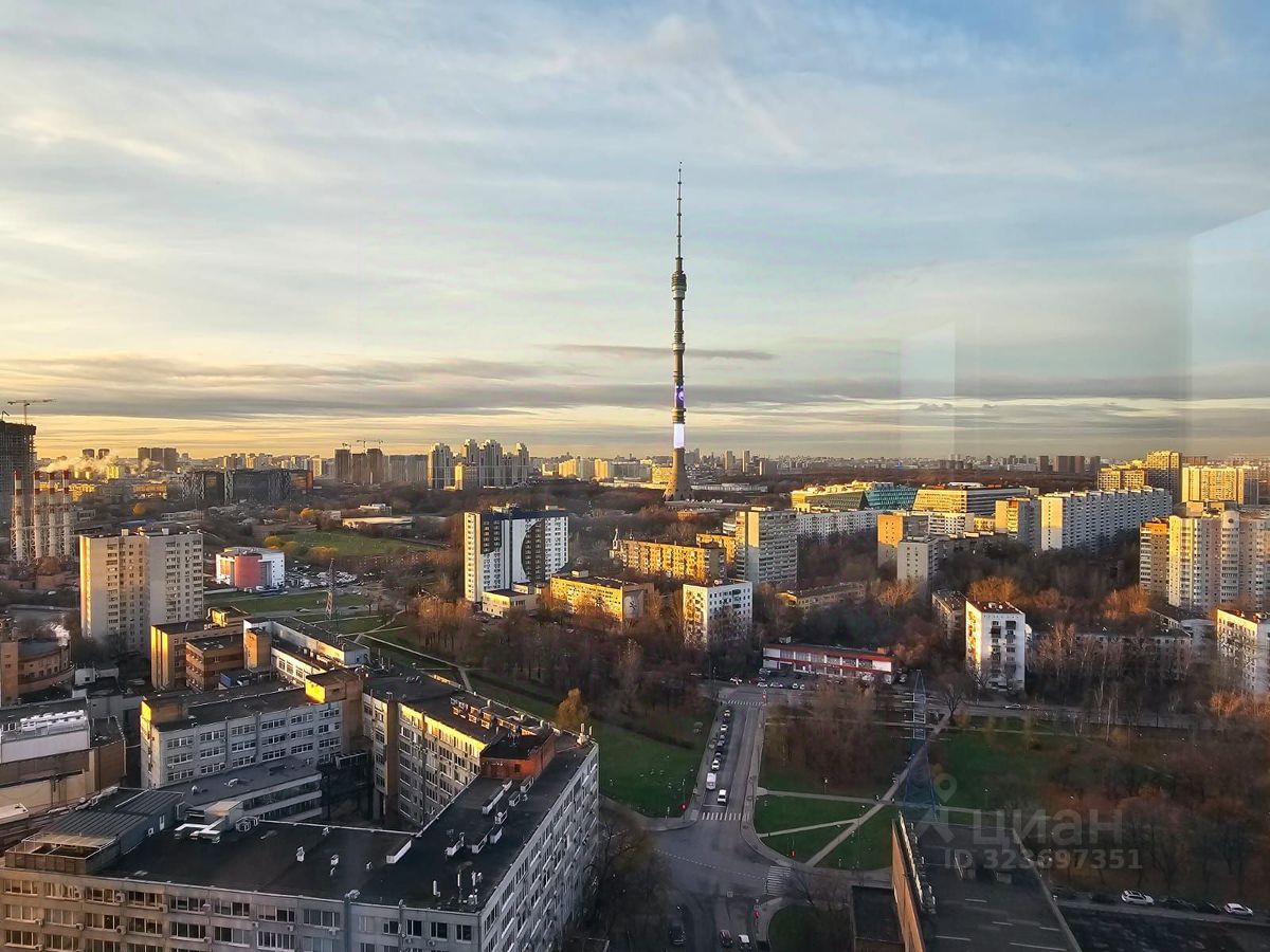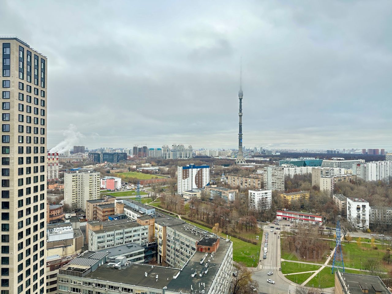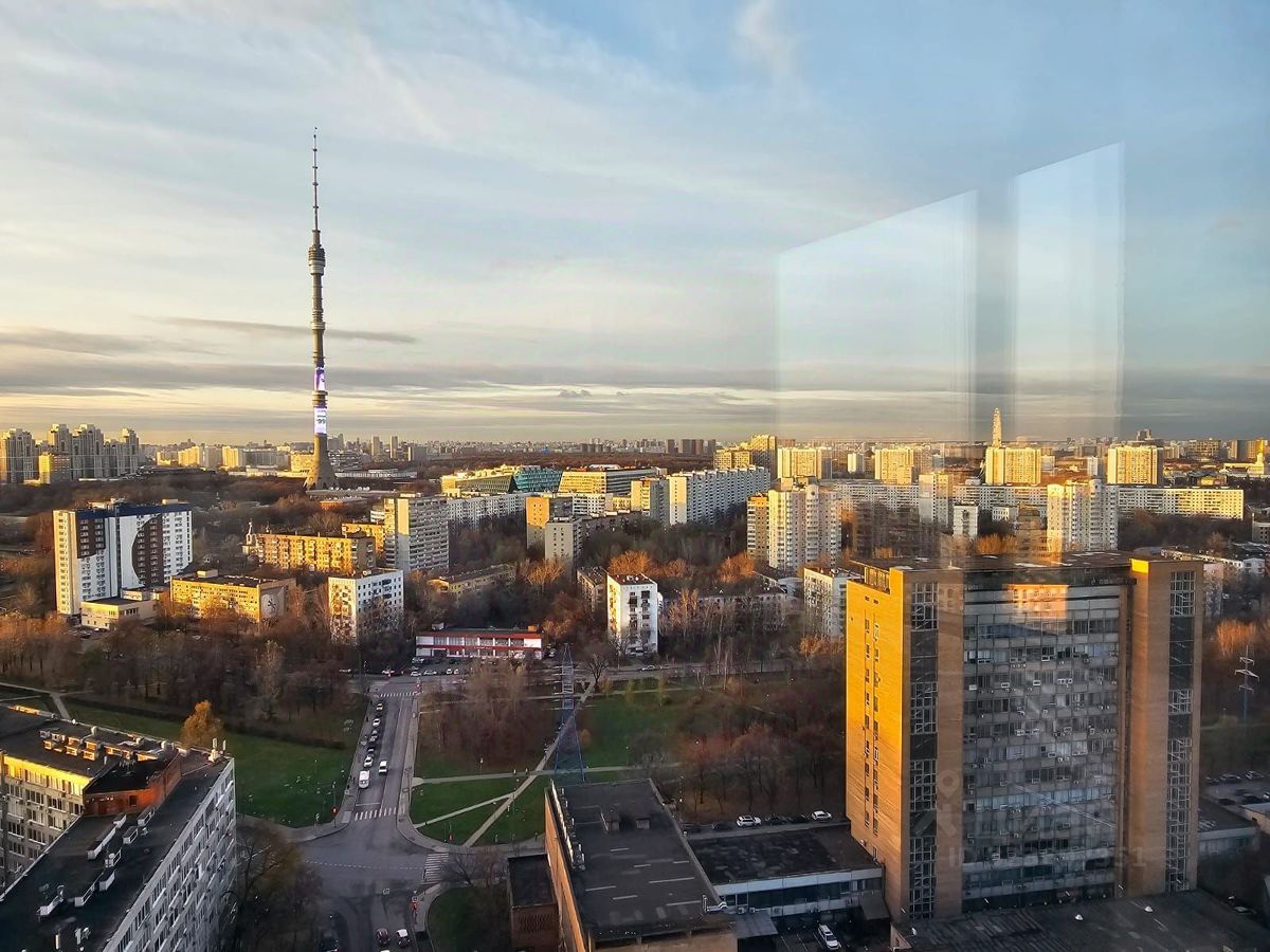 Квартира отличается панорамными окнами, высокими потолками и видом на Останкинскую башню, ВДНХ и другие знаковые объекты города.