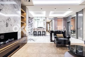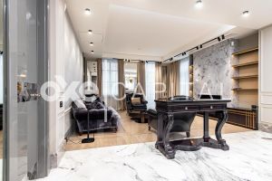 Предполагаемая планировка: просторная гостиная с балконом и видом в парк, столовая-кухня, 3 спальни, кабинет, 3 с/у, гардеробные.