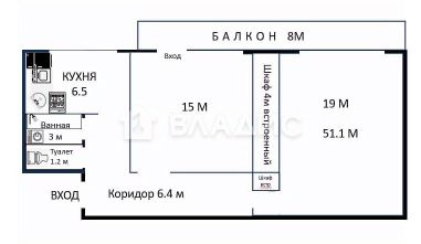 Хороший метраж - 51.1 м2 , две большие изолированные комнаты 19 м2 и 15 м2. Кухня 6.5 м2. Просторный коридор и невероятно огромный застеклённый балкон 8 м2 со свежим ремонтом.